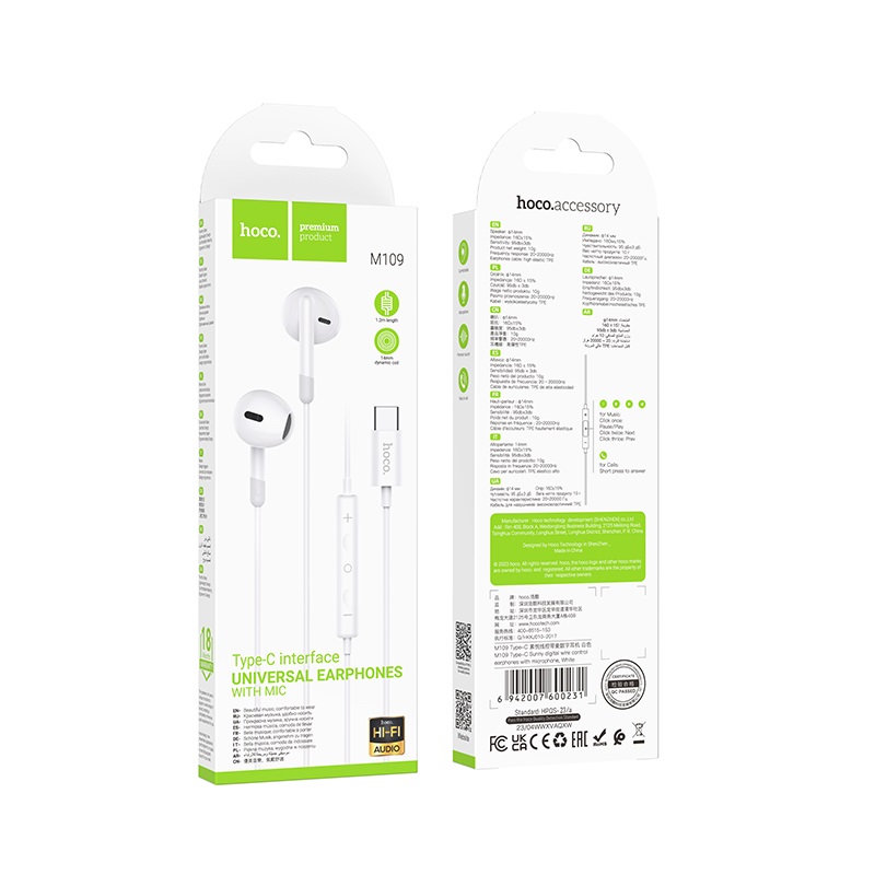 Die Hoco M109 Sunny Digital Wire Control Type C-Ohrhörer sind das perfekte Audiozubehör für Benutzer von Apple oder Android. Diese Ohrhörer wurden entwickelt, um Ihr Hörerlebnis zu verbessern, und verfügen über beeindruckende Spezifikationen. Diese Ohrhörer sind aus hochwertigem ABS und emailliertem TPE-Draht gefertigt und auf Langlebigkeit ausgelegt, was Haltbarkeit und Langlebigkeit gewährleistet. Ausgestattet mit einem leistungsstarken 14-mm-Horn liefern diese Ohrhörer eine beeindruckende und kristallklare Klangqualität, sodass Sie Ihre Musik, Podcasts und Anrufe in vollen Zügen genießen können. Mit einer großzügigen Kabellänge von 1,2 Metern und einem federleichten Gewicht von nur 10g bieten diese Ohrhörer Bewegungsfreiheit ohne lästiges Kabelgewirr. Dank der Inline-Steuerung können Sie die Lautstärke ganz einfach anpassen und Anrufe entgegennehmen, ohne nach Ihrem Gerät greifen zu müssen. Damit sind diese Ohrhörer perfekt für den mobilen Lebensstil geeignet. Hoco M109 kabelgebundene Ohrhörer mit Mikrofon. Tauchen Sie ein in überragende Klangqualität und genießen Sie den Komfort müheloser Steuerung.
