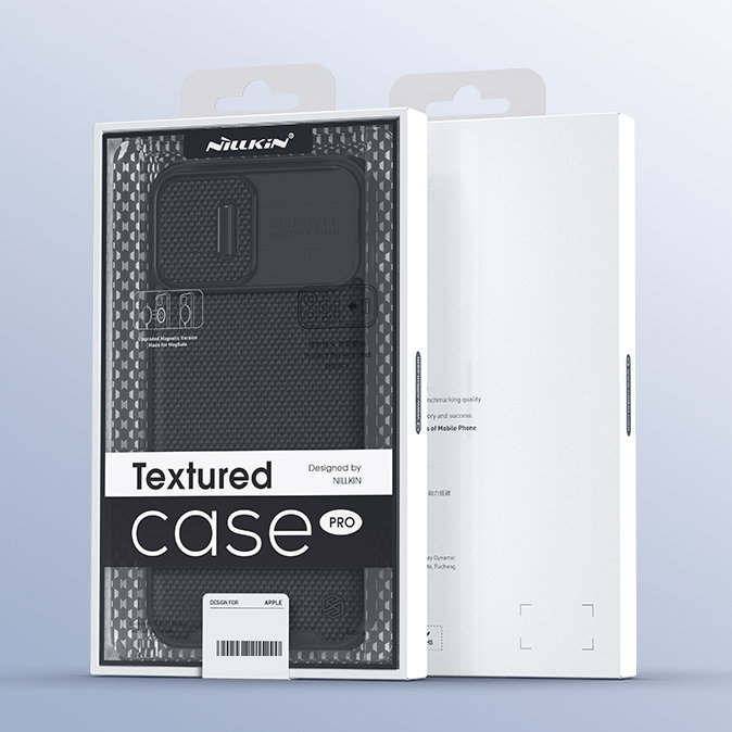 Das Nillkin Texture Pro Magnetic Case besteht aus wirklich starken Materialien : TPU, PC und Nylonfaser, um Ihr iPhone 13 Pro so effektiv wie möglich zu schützen. Das leichte Design bietet eine vollständige Abdeckung des Smartphones - von Kante zu Kante. Die verschiebbare Gegenlichtblende verhindert Kratzer auf Ihrer Kamera und schützt Ihre Privatsphäre. Darüber hinaus ist die Hülle voll kompatibel mit dem kabellosen MagSafe-Ladegerät .