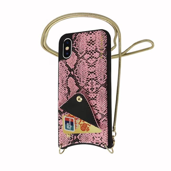 Der Jahrestrend geht weiter! Dank der angebrachten "Kette" kann das Handy bequem wie eine Handtasche über der Schulter getragen werden. So hast du das Handy immer griffbereit und die angebrachte Schutzhülle bietet deinem Smartphone perfekten Schutz vor Stürzen und Kratzern. Das Kartenfach auf der Rückseite bietet Platz für deine wichtigsten Karten.
