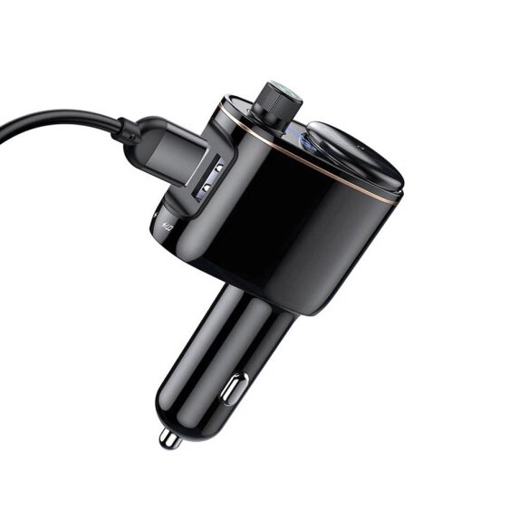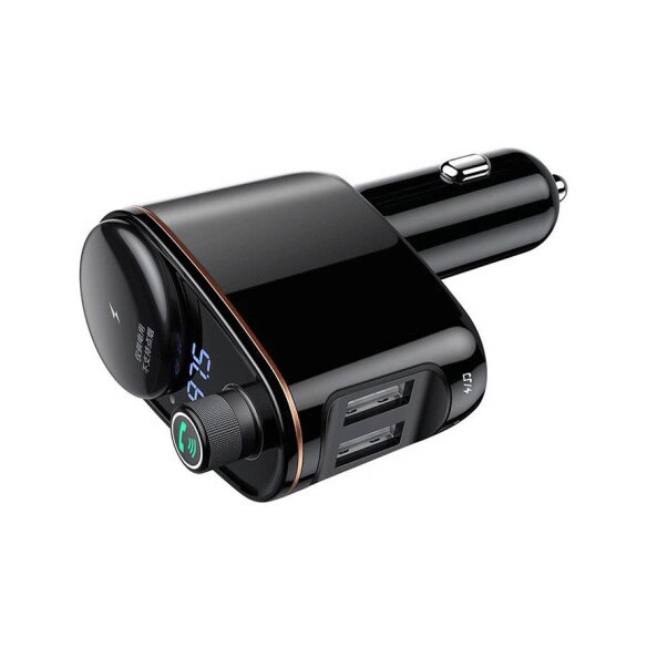 Baseus S-06 ist ein FM-Transmitter mit Bluetooth-Technologie, mit dem Sie auf Ihrem Telefon gespeicherte Musik über das Radio hören können. Koppeln Sie einfach Ihr Telefon mit dem Zubehör und suchen Sie dann auf dem Autoempfänger nach der entsprechenden Frequenz. Darüber hinaus verfügt der Sender über USB-A-Anschlüsse, über die wir beliebige Geräte aufladen können.