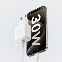 Joyroom JR-TCF24 Wandladegerät mit 30-W-USB-C-Anschluss mit PD-, QC- und SFC-Unterstützung – Weiss (USB-C-/USB-C-Kabel im Lieferumfang enthalten)